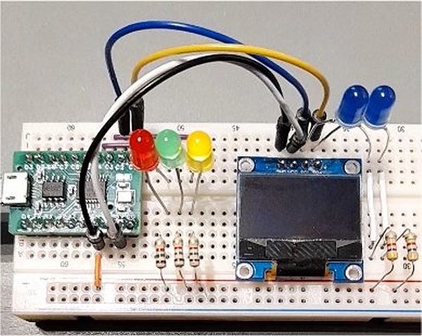 mittels Status-LEDs. Zu den LEDs: linke blaue LED -> SCL,