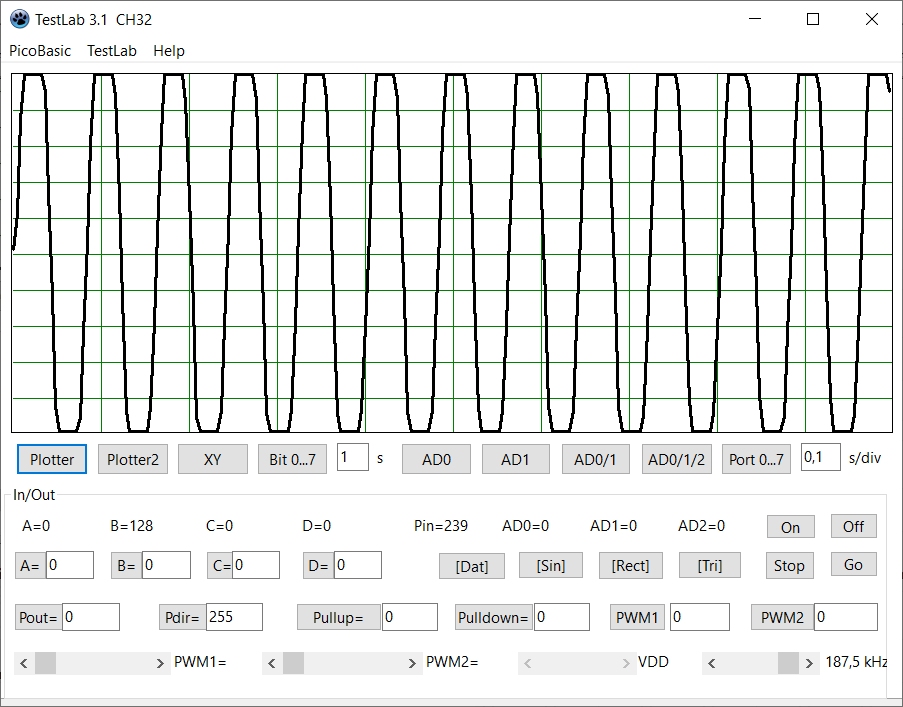 Zum Test wurde der Eingang berührt und damit ein 50-Hz-Signal
