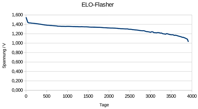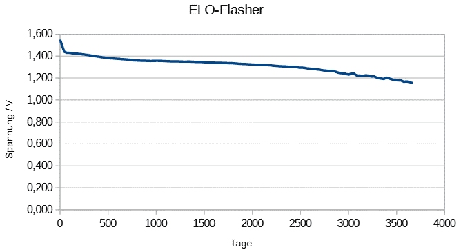Ich habe bereits mehrere Platinen frei nach dem ELO-Flasher gebaut. Eine praktische Anwendung fand eine Platine mit grüner LED in einer Funkprojektionsuhr. Die Uhrzeit wird alle 4 Sekunden an die Decke geblinkt, sie ist damit unabhängig vom Netz. Ein anderer blinkt seit fast fünf Jahren in einem Petling fröhlich vor sich hin. Da ich auch mehrere "ewige Binker" von Ihrer Hompage nachgebaut habe, kam mir die Idee, dass beim Blinker mit ATtiny13V noch mehr geht. Nach einer Skizze mit Papier und Bleistift baute ich die Schaltung auf einer Steckplatine auf und programmierte den ersten ATtiny13V für eine blaue LED. Das Ergebnis ist mit einer blauen, weißen oder grünen LED überzeugend.