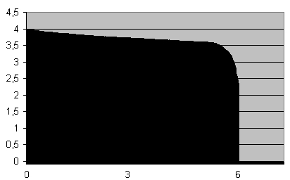 abgeschaltet. Die mittlere Spannung lag bei 3,7 V. Aus der Entladekurve kann