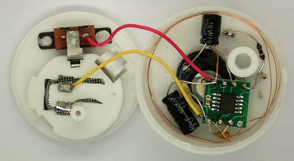 3-V-Litiumbatterie und Schalter. Statt der LED wurde ein