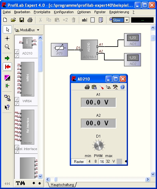 Beispiel zum Analog-Ineterface AD210. Es demonstriert die