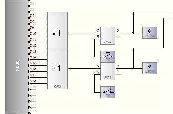 ein Eingang gesetzt, geht das dazugehörige RS FlipFlop auf high