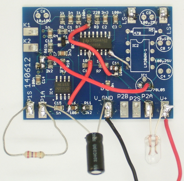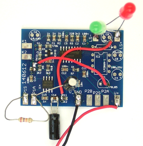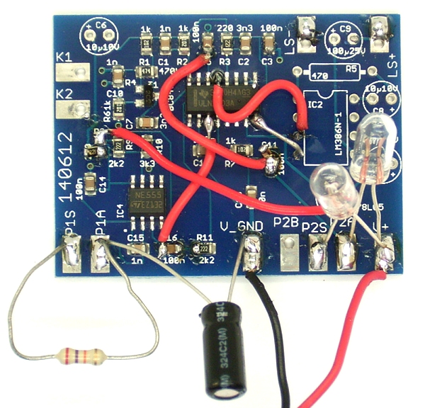 ersetzt. Statt des Schallgebers werden zwei LEDs (rot, grün) antiparallel