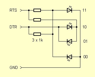 und dekodiert die Signale der beiden Leitungen DTR und RTS. Den vier möglichen