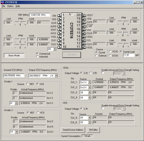 Der CY27EE16 besitzt einen internen PLL-Oszillator im Bereich 100 MHz bis