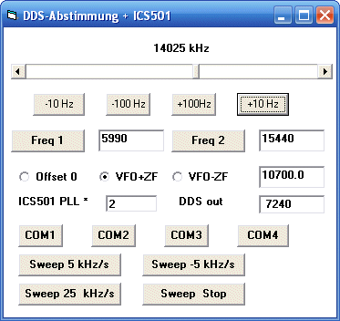 die tatsächlich von der DDS erzeugte Frequenz. Ganz oben im Programm
