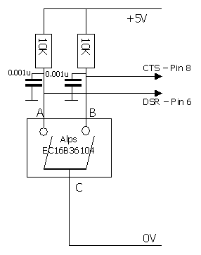 zeigt, dass die Schaltkontakte an die RS232-Eingänge CTS und DSR angeschlossen