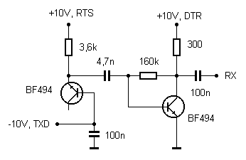 ca. +10 V. TXD bleibt aus und liefert -10 V. |