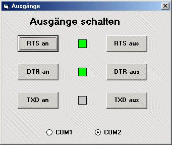 aus der ELEXS-CD. RTS und DTR werden eingeschaltet und liefern jeweils