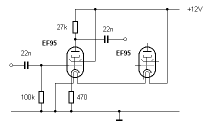 | Ein NF-Verstärker mit einer Röhre ist mit