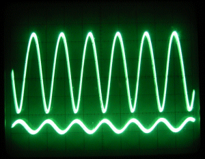 | Das Oszillogramm der Eingangs- und Ausgangsspannung