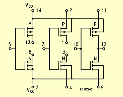 Problem, denn das CMOS-IC 4007 enthält mehrere einzeln anschließbare