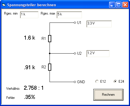 | Oft möchte man einen Spannungsteilern mit Normwiderständen