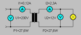 | Der wichtigste Grund Wechselstrom einzusetzen ist die Möglichkeit, mit Transformatoren die Spannung zu verändern. Ein Transformator enthält zwei Dahtspulen auf einem gemeinsamen Eisenkern. Das Verhältnis der Windungszahlen entspricht dem Verhältnis der Spannungen. Ein Transformator verändert im umgekehrten Windungsverhältnis die Stromstärke, so dass die Leistung bis auf geringe Verluste unverändert bleibt. |