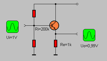 Der Vorteil des Emitterfolgers ist seine große Eingangsimpedanz ( seine Wechselstrom-Eingangswiderstand) Ri: