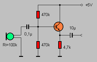 Emitterfolger als Impedanzwandler für ein Kristallmikrofon