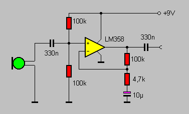 also z.B. als Mikrofonverstärker. Bei einfacher Versorgungsspannung