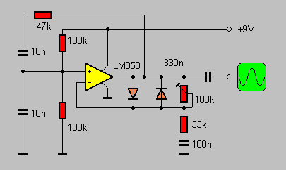 erzeugen, dann muss die Verstärkung begrenzt werden. Zwei Dioden im