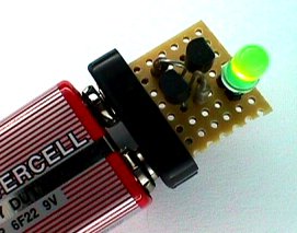 aufgebaut. Der Batterieclip stammt aus einer alten 9-V-Blockbatterie.