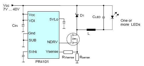 ist ein Step-Down-LED-Treiber für Eingangsspannungen zwischen 7 V