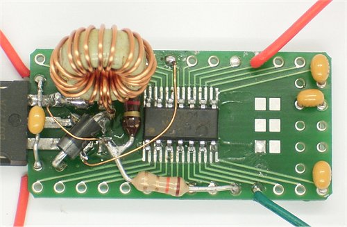 Speicherdrossel mit ca. 500 µH wurde auf einen kleinen Ringkern