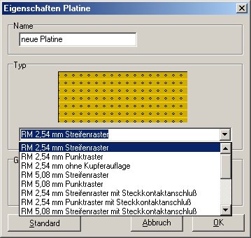 Schaltungen geht. Man kann auch die Größe der Platine festlegen.
