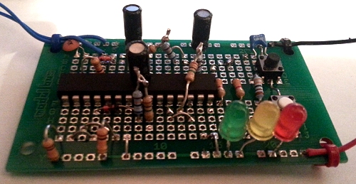 Diese Timer-Schaltung mit zwei CD4093 gehört mit zu den Gewinnerbeiträgen im Schaltungswettbewerb 2013/14. Da konnte man die Steckboardplatine gewinnen, die hier sofort zum Einsatz kam.