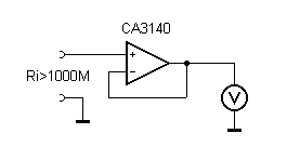 | Moderne Voltmeter bieten oft einen höheren Innenwiderstand von z.B. 10 MOhm. Dies ist nur mit zusätzlichen Verstärkern zu erreichen. Ein Messverstärker kann z.B. mit einem Operationsverstärker aufgebaut werden. Für spezielle Anwendungen kann man mit CMOS-OPVs fast unendliche Innenwiderstände erreichen. Diese Verstärker sollen allerdings nie mit offenem Eingang betrieben werden, weil sie dann irgendeine zufällige Spannung auch über der Messbereichsgrenze anzeigen können. |