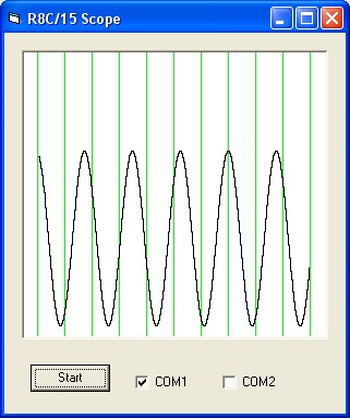 /* Einkanal-Scope, R8C/15, 10 MHz, 19200 Baud, 10 Bit, 250 Messungen */
