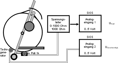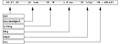 Zur Auswertung aller relevanten Daten sollte ein Interface entwickelt werden, das die eigentlichen Messungen autonom durchführt und Meßwerte in einem definierten Datenprotokoll selbständig an den PC sendet. Um alle geforderten Angaben zu erhalten, müssen insgesamt drei Größen ermittelt werden: Leistung, Geschwindigkeit und Herzfrequenz (Puls). Daraus lassen sich alle weiteren Daten berechnen. Wegen der Vielzahl der Meßgrößen und der Erzeugung einer vorgegebenen Zeichenkette kommt das SIOS-Interface mit SIOS-BASIC zum Einsatz.