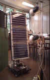 Das Solarmodul besteht aus Solarzellen der Firma AEG, die auf einem mittels Elektromotor drehbar gelagerten Stativ angebracht sind. Es besitzt zwei Endabschalter, über die definierte Positionen (Links- und Rechtsanschlag) abgefragt werden können. Ferner können die Spannung der Solarzellen direkt und der Strom indirekt über einen Lastwiderstand gemessen werden.
