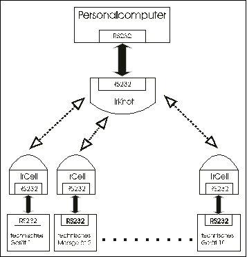 Dieses System besteht aus einem zentralen Empfangsmodul Namens Ir-Knot und einem oder mehreren Modulen mit dem Namen IrCell. Das Netzwerk besitzt eine sternförmige Topologie. Dabei bildet der Ir-Knot den räumlichen Sternpunkt und wird direkt an einen zentralen PC angeschlossen. Die IrCell wird über die RS-232-Schnitt-stelle mit dem zu überwachenden Messgerät verbunden