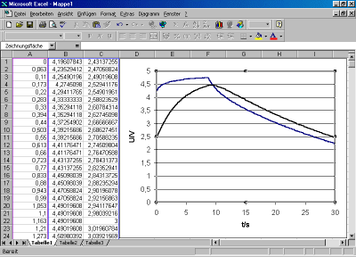 Die gewonnenen Daten lassen sich problemlos in eine Excel-Tabelle einfügen und dort weiter verarbeiten. Abb. 8.3 zeigt eine typische Darstellung der Messung in Excel.