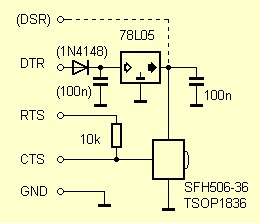 Abb. 2: Ein einfacher IR-Empfänger an der seriellen Schnittstelle