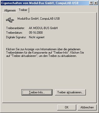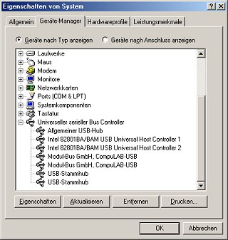 Der Treiber zum CompuLAB-USB wurde inzwischen erfolgreich auch mit Windws ME, Windows XP und Windows 2000 getestet. Der selbe Treiber wird ebenfalls für den USB-Portbautein verwendet. Im Gegensatz zu den älteren Treibern werden jetzt grundsätzlich mehrere Geräte unterstützt. Im Windows-Gerätemanager erkennt man die geladenen Treiber.