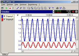 Das neue Programm RealView bietet einen komfortablen Kurvenschreiber für mehrere Messkanäle und eine Vielzahl unterschiedlicher Erfassungssysteme mehrerer Firmen. Hier ist es möglich, ein SERAI 6-10 vom AK-Modul-Bus zusammen mit einer Messkarte von Kolter oder einem Interface von ELV zu betreiben. Daten lassen sich über längere Zeiträume erfassen, online beobachten und nachträglich in beliebigen Maßstäben betrachten. Mit der Exportfunktion lassen sich Messkurven auch in andere Programme wie z.B. Excel einlesen.