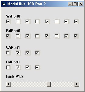 Man kann, aber nur an einem einzelnen Pin, nämlich Port 1.3. Diese Eigenschaft ist sozusagen ein vergessenes Überbleibsel des Thermometerbeispiels von Cypress, aus dem die Firmware entwickelt wurde. Sie soll hier als die einzige bisher undokumentierte Eigenschaft des USB-Port und der CompuLAB-USB vorgestellt werden, weil viele Anwender danach gefragt haben. Die vielen möglichen Anwendungen sind in Elektor 1/02 für den USB-UART beschreiben wurden. Der USB-UART wurde speziell für Elektor ebenfalls aus dem Cypress-Thermometer entwickelt. und kann alle Portströme steuern. Leider kann mit dem USB-Port von Modul-Bus nur ein Ausgangsstrom gesteuert werden, dafür ist der Baustein preiswerter.