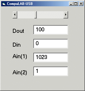 Die CLUSB.DLL ermöglicht Zugriffe auf die digitalen Eingänge, die digitalen Ausgänge und die Analogeingänge des CompuLAB-USB. Das folgende Programm in VB5/6 demonstriert die Anwendung der Grundfunktionen. Es entspricht dem bereits vorgestellten Anwendungsbeispiel der RSAPI.DLL (vgl. CompaS 26). Als einziger Unterschied fällt auf, dass die Analogeingänge nun mit einer Auflösung von 10 Bit gelesen werden und Werte bis 1023 liefern.