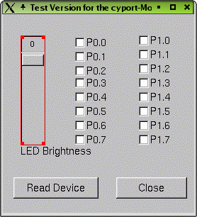 Mit diesem Linux Kernel Modul ist es möglich, die Portzustände der einzelnen Eingabe-Ports 0 -7, die analogen Eingänge A und B sowie die Ausgabe-Ports 0 - 7, zu setzen bzw. auszulesen. Auf der Seite findet man auch alle Einzelheiten zum Einsatz des Moduls.