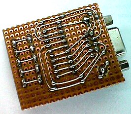 ausgeschnitten und genau passend auf ein Stück Lochrasterplatine geklebt.