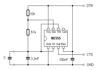 aus der seriellen Schnittstelle und erzeugt ohne ein Messobjekt C ein Rechtecksignal