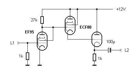 voll ausgesteuert werden. Hier sorgt die EF95 in Triodenschaltung