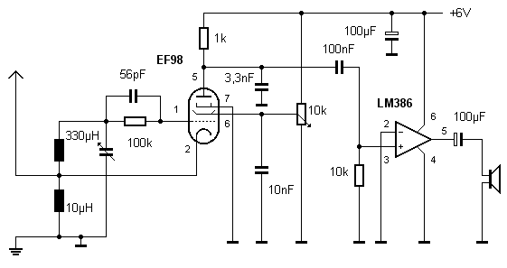 Mit nur einer EF98 lässt sich ein Empfänger für Kopfhörerbetrieb