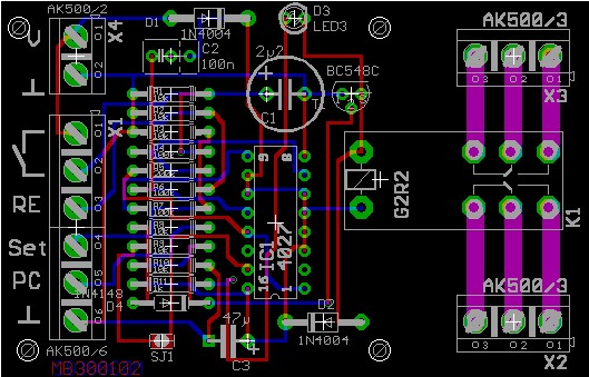 Schaltung des Relais-Schaltmoduls festgelegt und die Platine hergestellt.