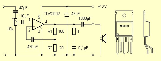 Verstärker TDA2002 wurde ursprünglich als Lautsprecherverstärker