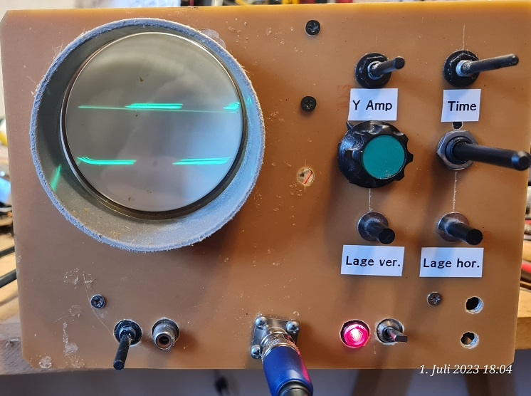 Im Elektronik-Labor braucht man ein Oszilloskop. Ohne geht es auf die Dauer nicht. Aber es muss kein teures Gerät sein. Mein erstes Oszi habe ich mir vor mehr als 30 Jahren selbst gebastelt. Auf dem Elektronik-Flohmarkt konnte ich eine 3-cm-Osziröhre bekommen, die nur eine Anodenspannung von 250 V brauchte.