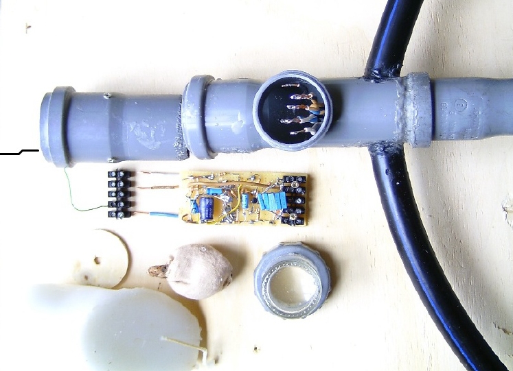 sonst übliche Abschirmung. Als Gehäuse dient ein HT- DN50 Abwasserrohr