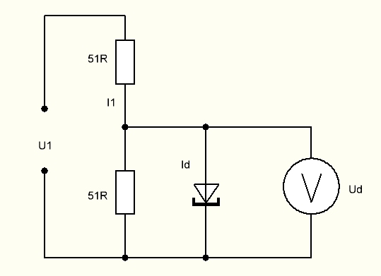 einstellbare Spannung U1 liefert. Die Spannung Ud an der Diode wurde