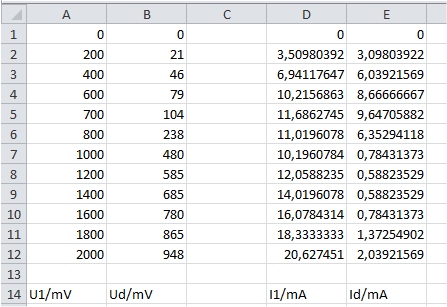 mit einem DVM gemessen. Die Messwerte wurden in eine Excel-Tabelle